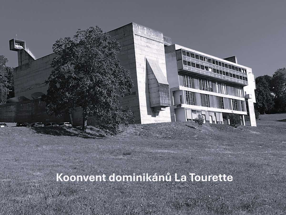 Dílo, které na nás působí jako mimozemské plavidlo, bylo dokončeno v r. 1960. Také zde Le Courbusier použil svůj modulární systém betonových čistých geometrických objemů a brutalistických textur. Za účelem regulace přirozeného světla a tvarování vnitřního prostoru a objemů použil promyšlený systém „světelných kanónů“ a „kulometů“, horizontálních a vertikálních štěrbin, světlíků, slunečních clon, lodžií a skleněných panelů. Konvent La Tourette, inspirovaný cisterciáckými kláštery a uspořádaný na čtvercovém půdorysu, se skládá ze dvou hlavních budov: konventu ve tvaru písmene U a kostela, který jej uzavírá na severní straně. Kostel tvoří uzavřený betonový kvádr s originálně navrženým bedněním, které se do něj otisklo. Je osvětlen světelnou studnou a horizontálními i vertikálními štěrbinami s barevným povrchem, které do interiéru vnášejí neustále se měnící světelné efekty. Krypta a sakristie přiléhající ke kostelu jsou vybaveny šikmými světelnými zdroji známými jako „světelné kanóny“ nebo „kulomety“, z nichž některé jsou polychromované. Tři křídla kláštera spočívají na rámu z betonových sloupů a nosníků. Dvě horní patra jsou určena k bydlení a jsou v nich umístěny cely mnichů. Ty jsou uspořádány funkčně a členěny od vnější strany k vnitřní, podle přirozeného poklesu světelnosti: lodžie pro meditaci, pak dobře osvětlený pracovní prostor, a nakonec odpočinkové místo s postelí, oddělené od toaletní části vestavěnou skříní. Dnes zde žije 9 mnichů, kteří zde pořádají duchovní cvičení a různá duchovní ritíra.