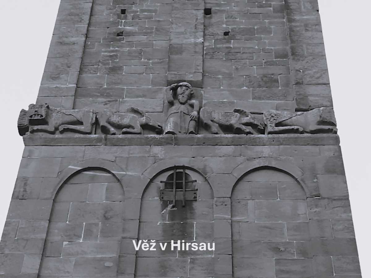 Volně procházíme celým areálem. Původně jsme v něm chtěli spát, ale právě zde bourají pódium a hlediště po nějakém festivalu, a tak nám spaní není umožněno. Nejsilněji na nás působí románské sochy na severozápadní věži opatského kostela, která po devastaci kláštera sloužila jako vězení. Figurální vlysy, který obklopují věž nad druhým patrem na severní, západní a jižní straně, mají velký význam z hlediska dějin umění. Skupinám soch dominují vousaté mužské postavy. Figurální scény podle Dr. Stefana Wintermantela představují životní dráhu laického bratra. Vousatý muž na severní straně, který je díky lysému čelu a dlouhému vousu, charakterizován jako stařec, tvoří kontrastní pár s mladým mužem, který nese pilastr na jižní straně. Ten, znázorněný jako atlant v zenitu svého života, stojí vzpřímeně a rukama podpírá kamenný trám. Ztělesňuje sílu i životní vitalitu a jako takový přebírá funkci živého stavebního kamene. Starý muž na severní straně naopak sedí s rukama položenýma na kolenou, s prázdným výrazem ve tváři a působí dojmem vyčerpání. Kříž mezi chlapcem a starcem je interpretován jako pokračování života od dětství až do konce života. Laický bratr na západní straně tedy symbolizuje mladého muže, který má celý život před sebou. Jeho gesto ruky spočívající nad očima naznačuje zvědavý pohled do budoucnosti jeho života plný očekávání. Zobrazení zvířat je interpretováno za pomoci Physiologu, který se v Hirsau prokazatelně používal, a odtud se rozšířil do širokého okolí. Rohatá zvířata jsou identifikována jako antilopy, kozli a kamzíci. Lví hlavy na čtyřech rozích věže jsou považovány za vymezení sakrální oblasti, přičemž symbolika lva může být v křesťanské alegorizaci ambivalentní.