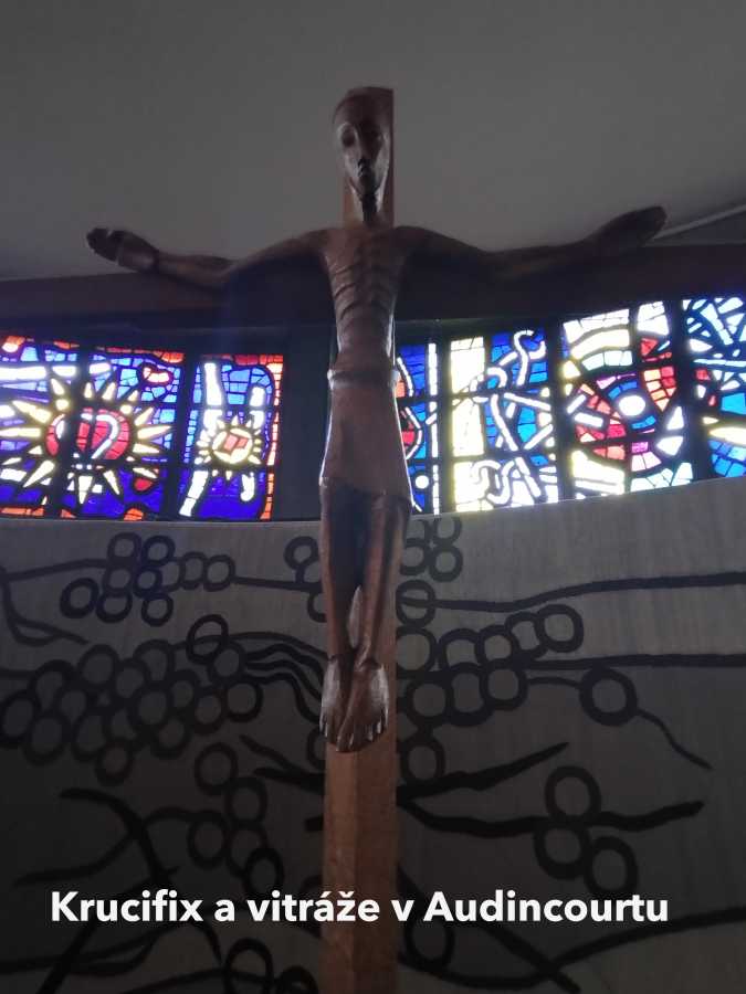 Máme necelou hodinu, abychom se dostali do Audincourtu, kam nás nasměroval otec Axel. Zde totiž stojí kostel Nejsvětějšího srdce Páně, který nechal vybudovat mimořádný dominikán Alain-Marie Couturier. Ten ve svém časopise L´Art Sacré systematicky promýšlel vztah moderního umění a sakrality. Přijíždíme hodinu po zavírací době. Avšak Terezka si na kostele všimla telefonního čísla. Okamžitě ho vytáčíme. Najednou slyšíme, jak v okně kousek od nás vyzvání telefon. Z okna vyhlíží usměvavá a energická stařenka a francouzsky na nás volá. „Chcete do kostela?“ „Ano, moc rádi“ odpovídáme a ona hned: „Tak já vám hodím klíče“. Nečeká na odpověď, a už nám klíče hází z okna. Stal se další div. Jsme uvnitř. Téměř hodinu. Kluci si na místní toaletě dokonce umyjí hlavu.