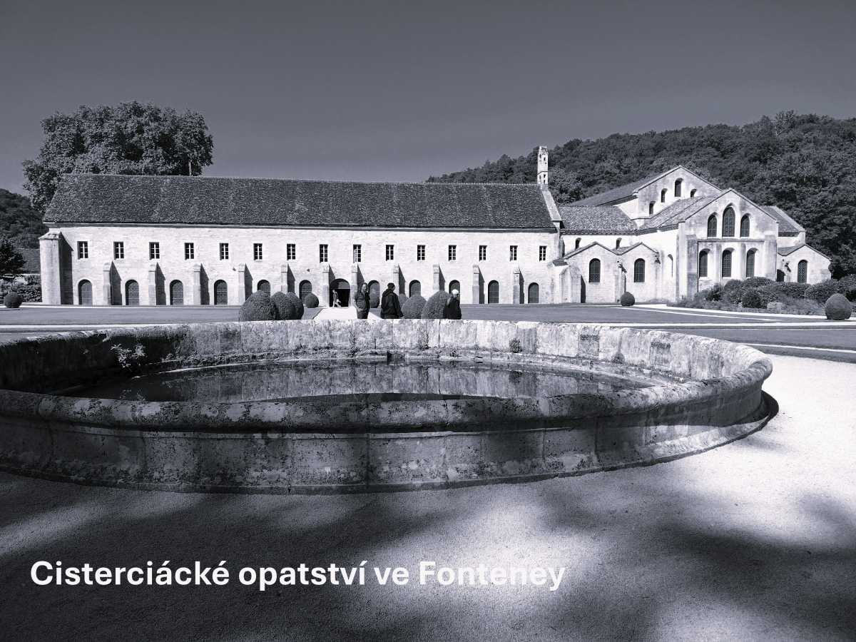 Fonteney je poezie v kameni. Je to jeden z nejstarších a také jeden z nejvlivnějších cisterciáckých klášterů vůbec. V r. 1098 se od jednoho benediktinského opatství oddělila skupinka asi dvaceti nespokojenců v čele s opatem svatým Robertem z Molesmes. Důvodem jejich odluky byla touha po návratu k institucionální chudobě vyjádřená fyzickou prací. Robert byl sice brzy donucen k návratu, aby konsolidoval klášter, ze kterého odešel, a vůči kterému byl vázán slibem stabilitas loci, ale jeho nový podnik, navzdory neuvěřitelnému strádání a protivenstvím, nezanikl. Vedení Citeaux, tak se totiž místo tohoto podniku jmenovalo, připadlo v r. 1099 jeho nástupci a spolubratru svatému Alberichovi a r. 1109 dalšímu z trojice iniciátorů myšlenky svatému Štěpánu Hardingovi. V dubnu r. 1112 na bránu kláštera zaklepal mladý šlechtic Bernard z Fontain, později známý jako svatý Bernard z Clairvaux, spolu s dalšími asi třiceti bratranci a přáteli. Svatý Bernard se, navzdory chatrnému zdraví, stal určující duchovní autoritou své doby a po několik století také jedním z nejvlivnějších autorů teologické a mystické literatury. Po smrti byl jmenován učitelem Církve.