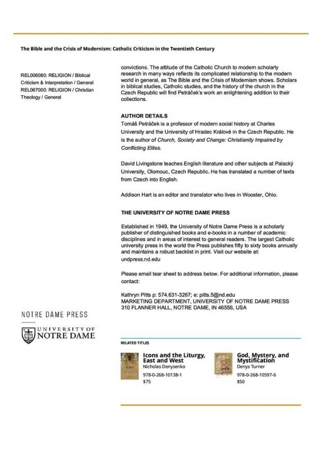 V nakladatelství Notre Dame Press právě vyšla nová kniha Tomáše Petráčka „The Bible and the Crisis of Modernism: Catholic Criticism in the Twentieth Century“. Podrobnosti najdete tady.